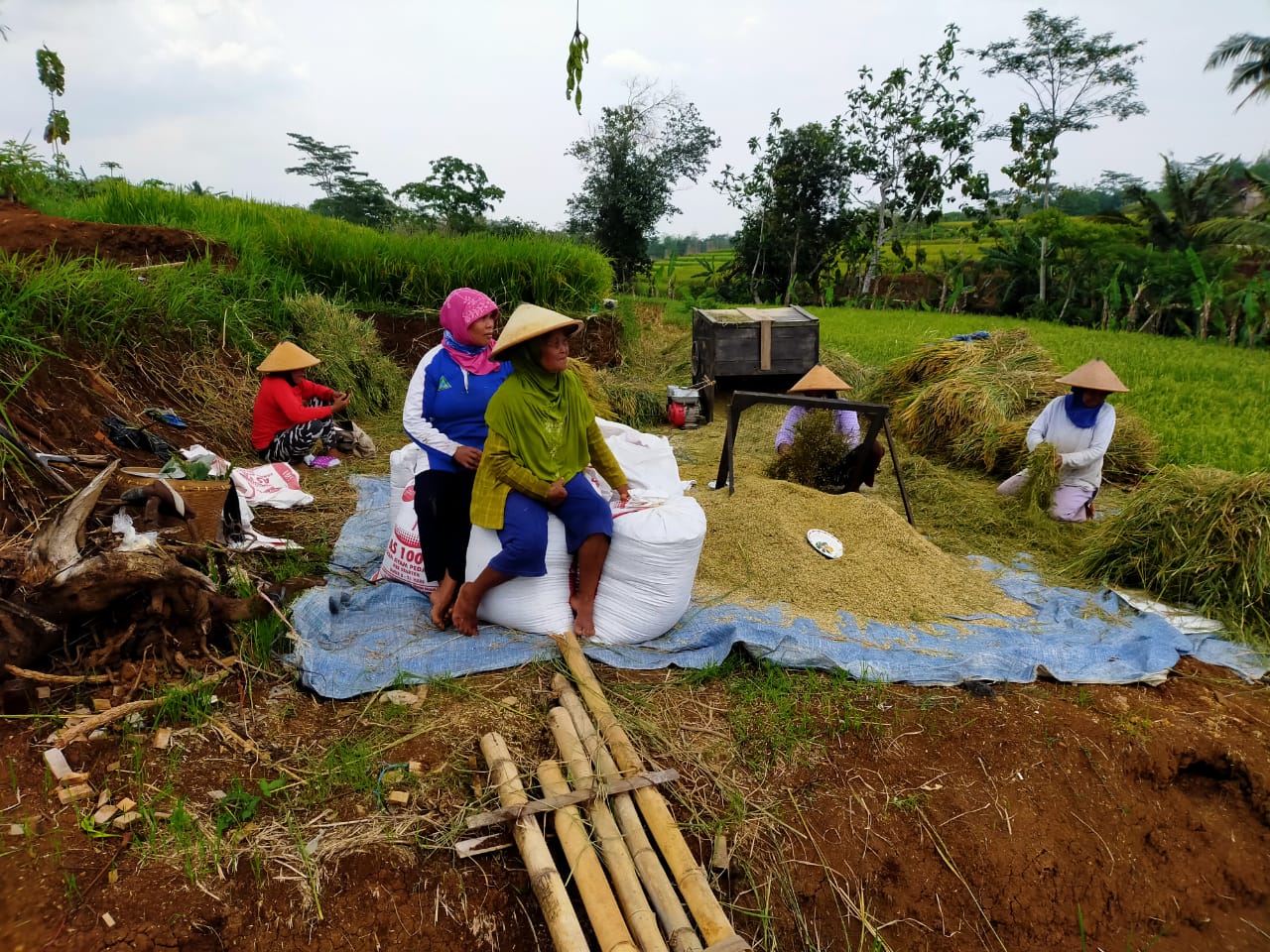 Senyum dari warga petani terus mengembang saat warga bisa panen padi dengan akses jalan yg bagus. Sesekali lontaran kalimat dari mereka.