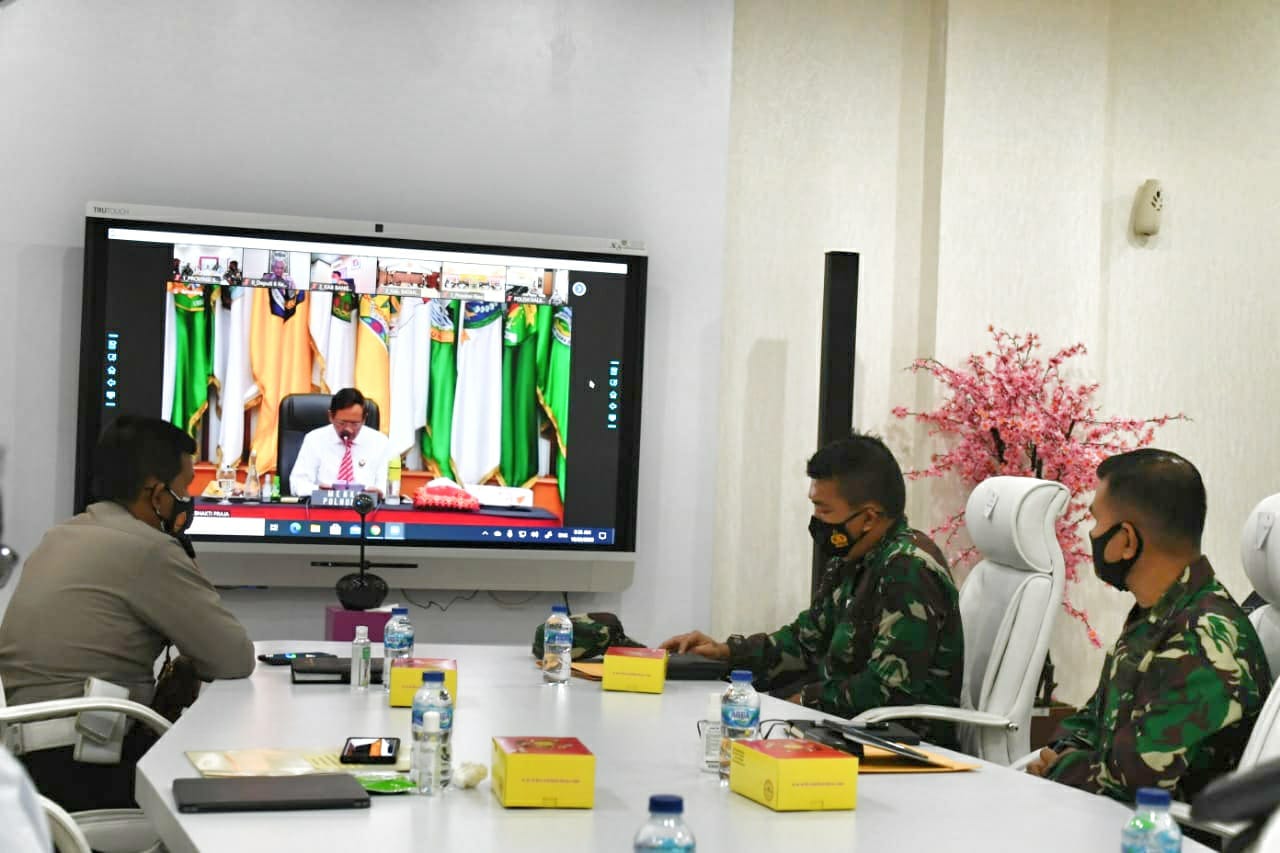 KASDAM II/SRIWIJAYA IKUTI RAKOR ANTISIPASI PENYEBARAN COVID-19 TERKAIT LIBUR PANJANG DAN CUTI BERSAMA