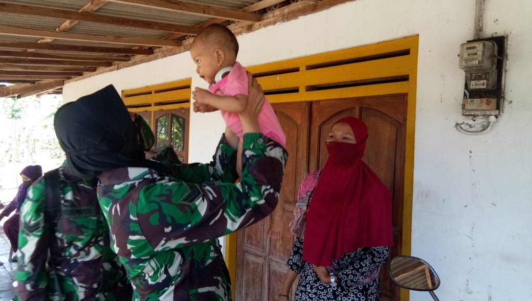 Ananda Terbit (1) putra dari ibu Fitri ini bagaikan piala bergilir di gendong oleh anggota Kowad Korem 074/Wrt secara bergantian dengan penuh kasih sayang.