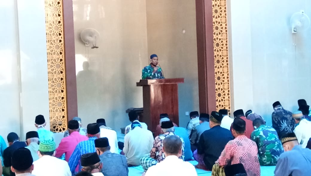 Lamongan,- Pelaksanaan sholat Jumat berjamah di Masjid Al-Ittihad Yakin nampak berbeda dari suasana sebelumnya. Pasalnya, sekarang ini ada jamaah baru dari anggota TNI dan Satgas yang melaksanakan program TMMD di Desa Tebluru Kecamatan Solikuro Kabupaten Lamongan.