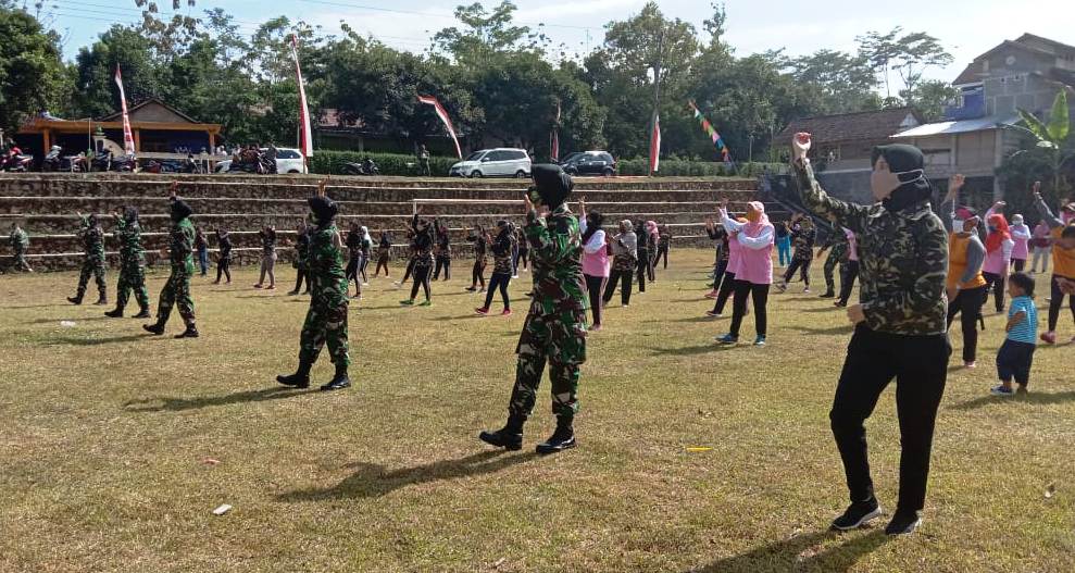 Yakni sejumlah anggota Korps Wanita Angkatan Darat (Kowad) Korem 074/ Warastratama, pagi sebelum aktifitas di sejumlah sasaran fisik TMMD Reguler Ke-109 Kodim 0727/Karanganyar dimulai, menggugah suasana, menggelar senam bersama ibu-ibu di Desa Jatiwarno.