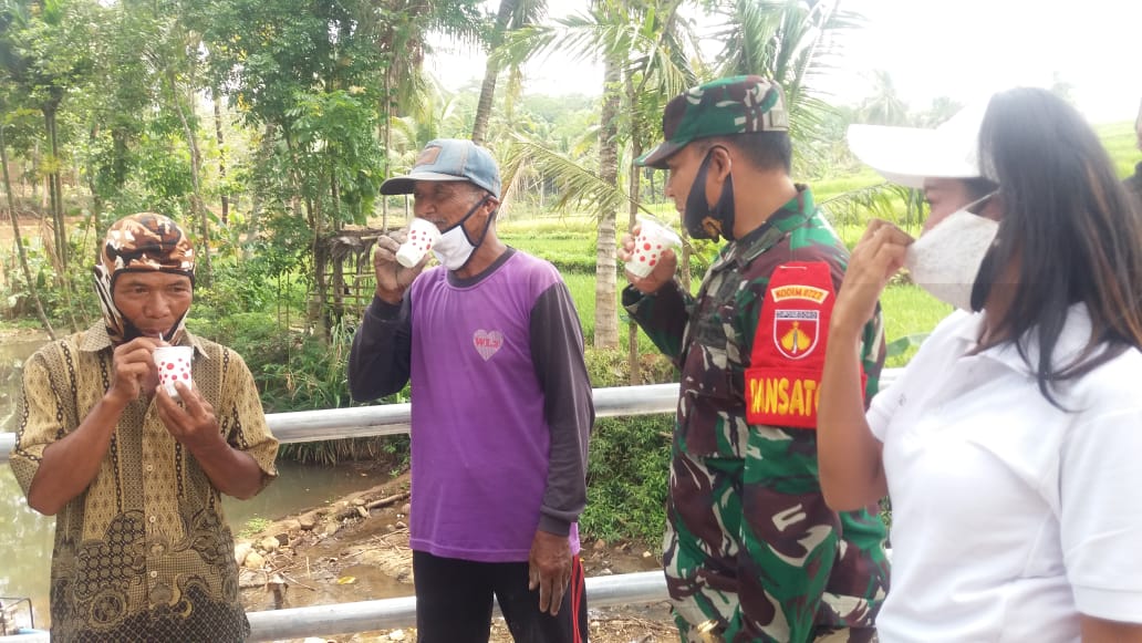 KARANGANYAR – Salah satu warga yakni mbah Patmo berkesempatan untuk minum susu bersama Dandim 0727/Karanganyar Letkol Inf Ikhsan Agung Widyo Wibowo, S.I.P. di lokasi TMMD Reguler Ke-109 Kodim 0727/Karanganyar Desa Jatiwarno, Kecamatan Jatipuro, Kabupaten Karanganyar.