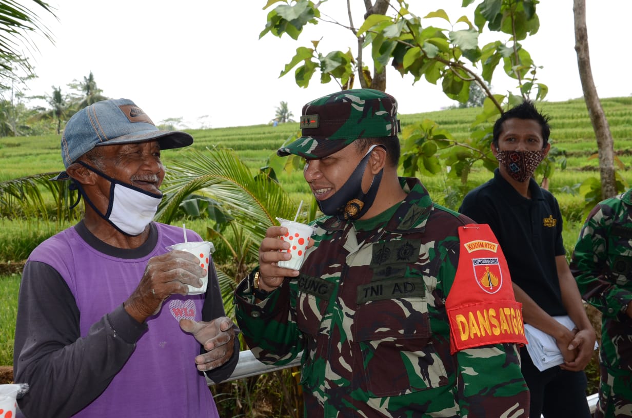 Terlihat, Dandim dengan sukarela memberikan susu kemasan tersebut kepada warga dengan harapan agar warga yang ikut dalam kegiatan TMMD Reguler Ke-109 Kodim 0727/Karanganyar, menjadi lebih semangat lagi dan bisa mengerjakan semua program fisik TMMD dengan maksimal.