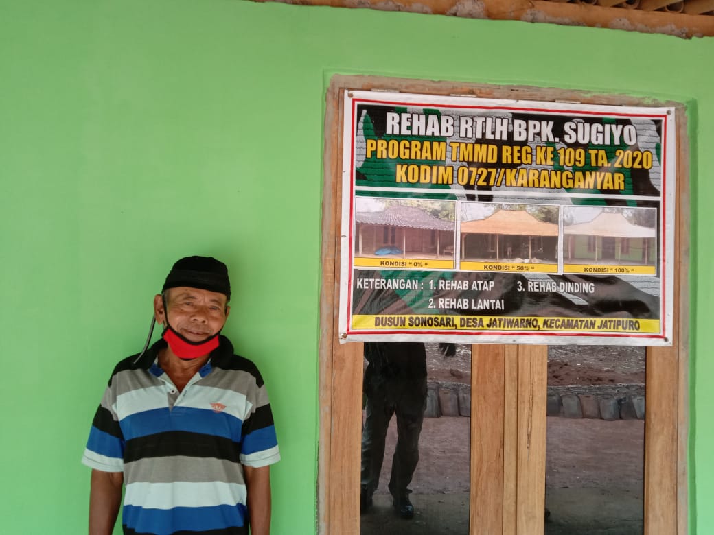 Dalam program kegiatan TMMD ini, TNI juga mengerjakan sejumlah insfrastruktur yaitu dua jembatan dan pengecoran jalan sepanjang 770 meter serta rehab 10 rumah tidak layak huni, di Desa Jatiwarno Kecamatan Jatipuro, Karanganyar. Suripto (68) warga Dusun Klumpit, salah satu penerima manfaat renovasi Rumah Tidak Layak Huni (RTLH) dalam Program TMMD Kodim Karanganyar.