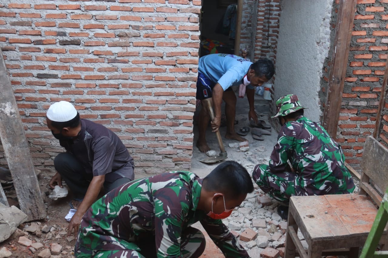 Bandar Lampung, Dalam Rangka TMMD ke 109 Kodim 0410/KBL Melangsungkan Perombakan Bedah rumah milik Ibu Siti Hafsah Umur 38 Th Pekerjaan Ibu rumah tangga Alamat Jl. Pendawa No. 18 RT 06 Lk.I Kel. Garuntang Kec. Bumi Waras Bandar Lampung. Jumat (09/10/2020)