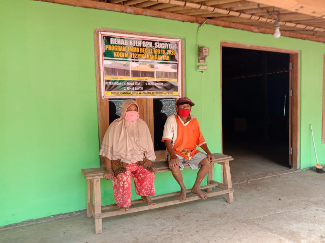 Karanganyar – TNI Manunggal Membangun Desa (TMMD) Reg 109 TA. 2020 Kodim 0727/Karanganyar di desa jatiwarno telah berakir, babinsa jatiwarno Sertu Untung Trijaya melakukan komsos dengan salah satu warga yang telah mendapatkan bantuan rehap rumah tidak layak huni (RTLH) milik bu marni dusun sonosari Rt. 15/07 desa jatiwarno kecamatan jatipuro kabupaten karanganyar.