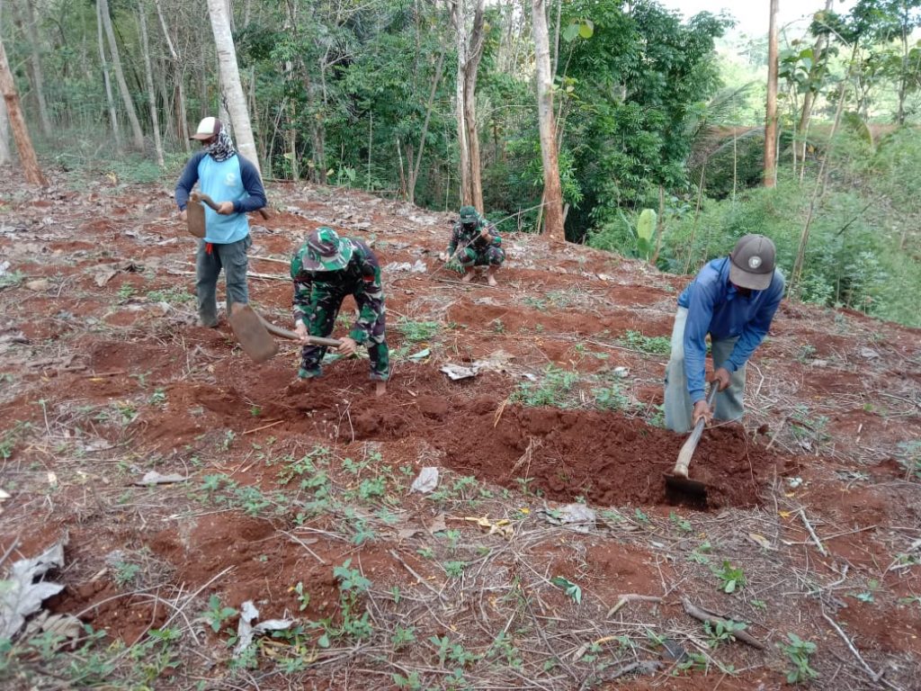 KARANGANYAR – Ditengah padatnya kegiatan Tentara Manunggal Membangun Desa (TMMD) Reguler Ke-109 Kodim 0727/Karanganyar, di Desa Jatiwarno, anggota Satgas TMMD ini masih menyempatkan diri membantu warga gemburkan tanah untuk ditanami singkong.