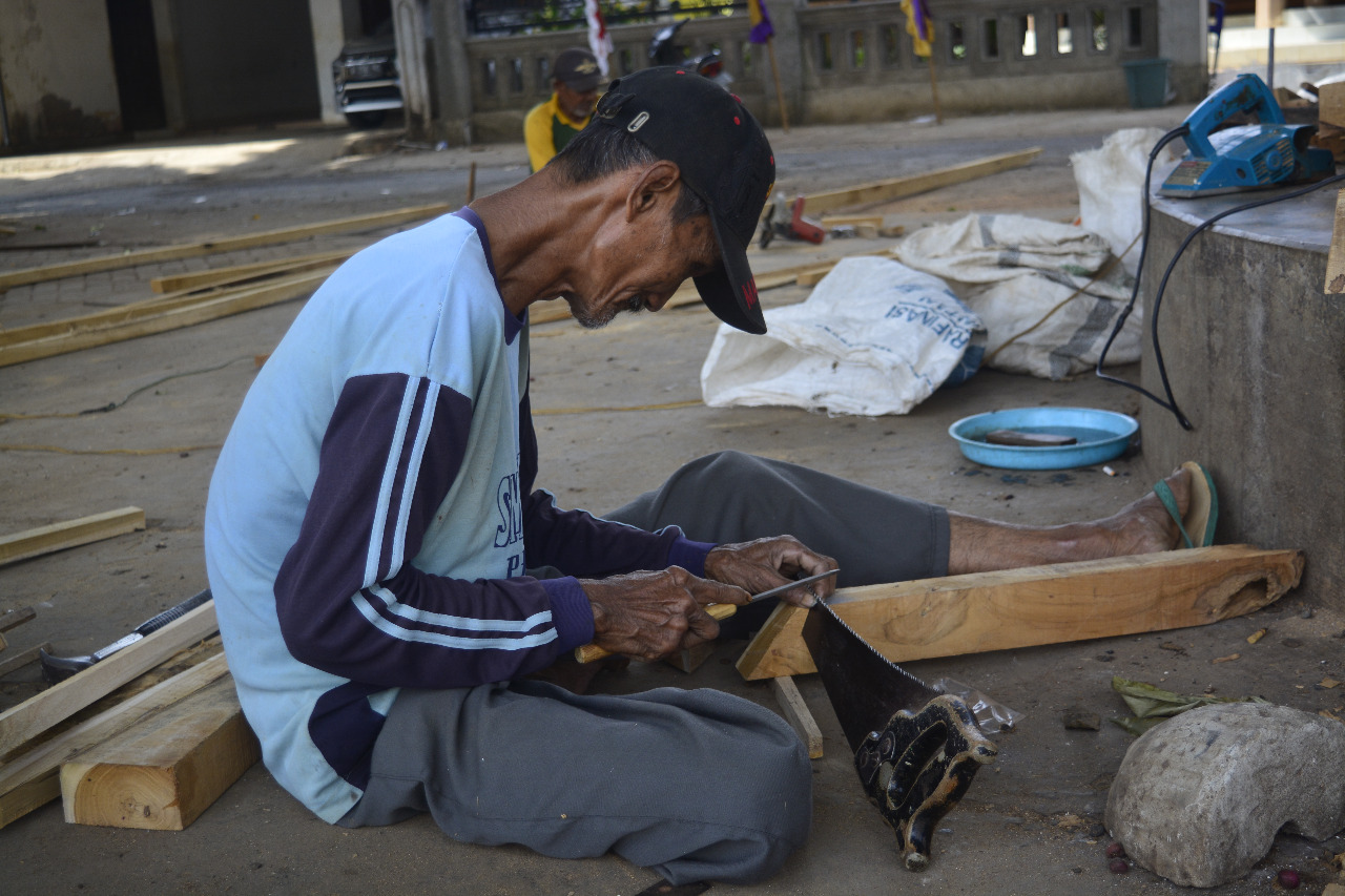 Setelah selesai mengikir gergajinya, Maliki kembali melakukan pekerjaan menyelesaikan pemotongan kayu yang akan digunakan untuk pembangunan Rutilahu milik warga, sehingga nantinya diharapkan warga yang mendapatkan bantuan tersebut dapat segera menempatinya dengan baik.