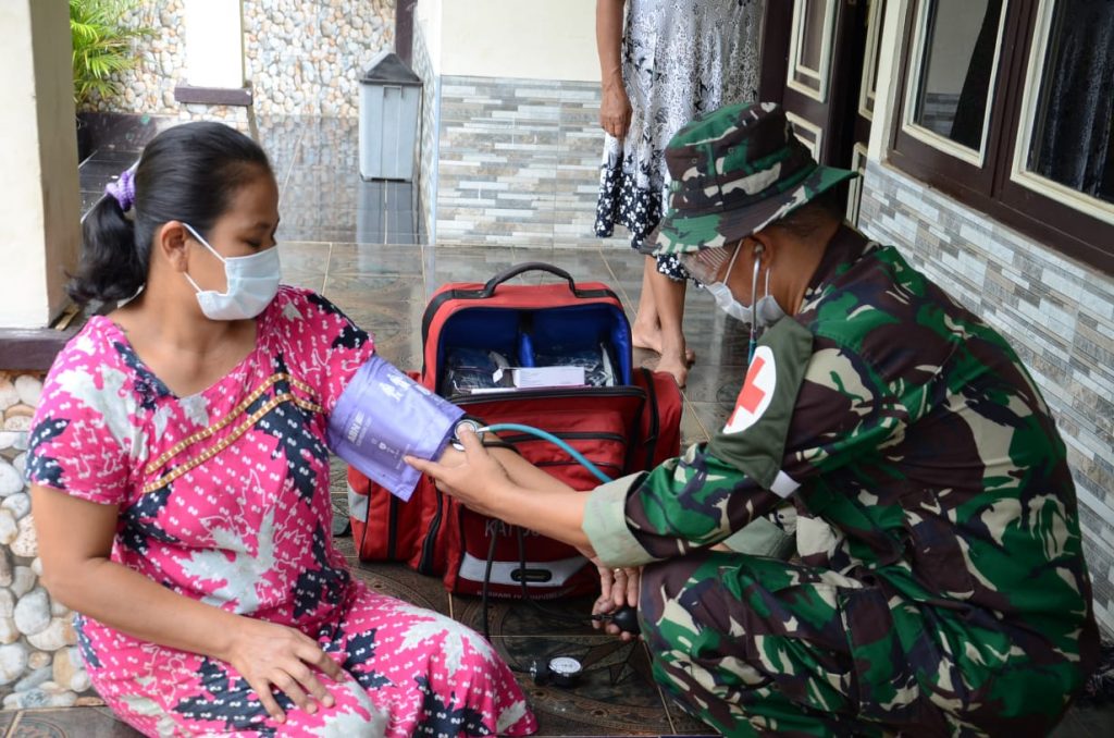 Karanganyar-Tim kesehatan Satgas TMMD Reguler 109 Kodim 0727/Karanganyar melakukan inovasi pemeriksaan home to home diharapkan masyarakat tidak malu dan ragu untuk konsultasi kesehatan.