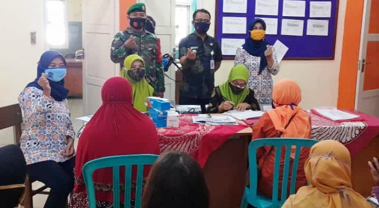 KENDAL – Salah satu anggota Satgas TMMD Reguler ke – 109 Kodim 0715/Kendal, Serka Mahfurin ikut mendampingi warga Desa Sendang Kulon Kecamatan Kangkung Kabupaten Kendal yang mengikuti pelayanan KB di Puskesmas 2 Kangkung. Lokasinya kebetulan berada tepat di sebelah Balai Desa Sendang Kulon.