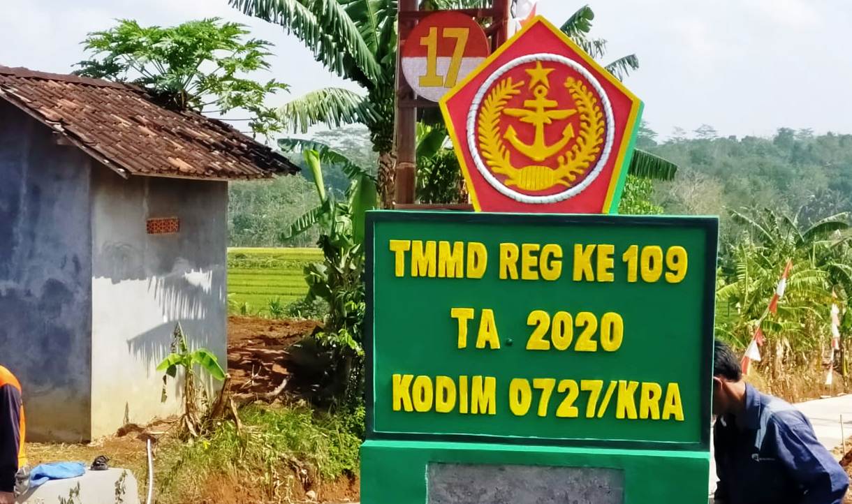 Sertu Budi Cahyono anggota Satgas TMMD menyatakan, pembangunan prasasti tersebut malambangkan bukti nyata manunggalnya TNI dengan rakyat. Tugu prasasti ini dibuat bukan hanya sebagai hiasan, ini merupakan gambaran dan ukiran sejarah. “Bahwa TMMD Reguler Ke-109 Kodim 0727/Karanganyar TA.2020 sudah memilih dan menyentuh Desa Jatiwarno sebagai obyek pembangunan dari program TMMD Reguler ke 109 di Desa Jatiwarno,” pungkasnya.(AL)