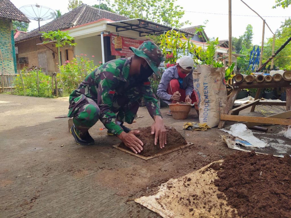 Karanganyar-Upaya demi upaya terus dilakukan untuk mendekatkan diri kepada masyarakat, seperti yang dilakukan oleh Pratu Darmin Tarae salah satu anggota Satgas TMMD reguler ke 109 Kodim 0727/Karanganyar di Desa Jatiwarno,Kecamatan Jatipuro, Kabupaten Karanganyar Menyempatkan anjangsana Sekaligus belajar Membuat Pot Bunga drumah Bp Ahmad (34) pengrajin Pot bunga di Dusun Trugo Rt 6/3 Desa Jatiwarno.