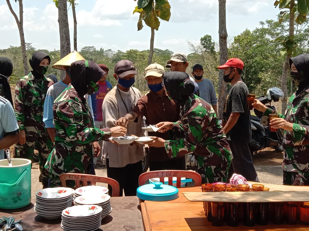 Karanganyar-Waktu istirahat telah tiba,rombongan ibu-ibu Desa Jatiwarno Bersama Srikandi Warastratama tampak sedang membawakan logistik siang.