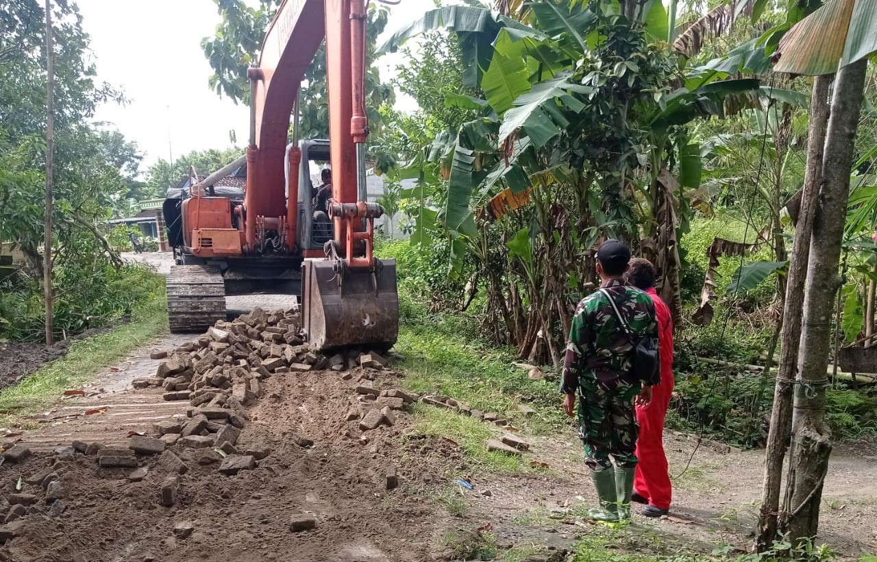 Bojonegoro – Kopda Anang selaku tim TMMD 110 Kodim 0813/Bojonegoro mengawasi pembongkaran paving sepanjang 1 Kilo Meter di Desa Jatimulyo, Kecamatan Tambakrejo, Kabupaten Bojonegoro, Senin (22/2/2021). Jalan merupakan infrastruktur yang sangat penting dalam aspek kehidupan masyarakat, sehingga perlu adanya perhatian untuk memastikan kelayakannya.