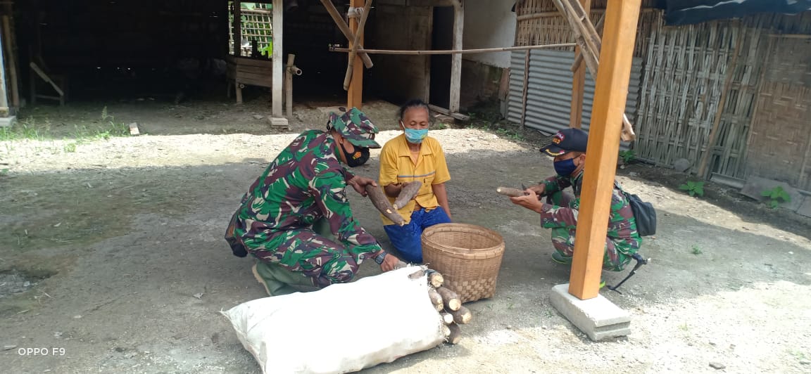 Bojonegoro,jodanews.com – Satgas TMMD ke- 110 Kodim 0813/Bojonegoro membantu mbah Sapiyem (52) warga Desa Jatimulyo RT.8 RW.8, Kecamatan Tambakrejo, Kabupaten Bojonegoro, mengupas singkong untuk menjalin keakraban, Minggu (21/2/2021).