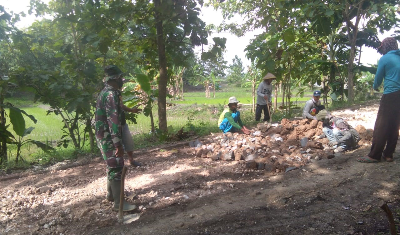 Jalan rusak di Desa Ngrancang ini menjadi sasaran fisik dalam program perbaikan yang dilakukan oleh TMMD ke- 110 Kabupaten Bojonegoro. Warga pun turut andil dalam perbaikan jalan ini.