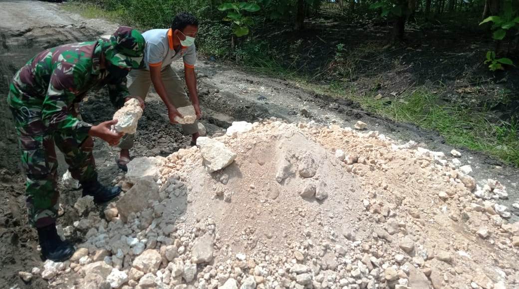 Kali ini anggota Kodim turut turun tangan membantu masyarakat Desa Ngrancang Kecamatan Tambakrejo dalam memperbaiki jalan.