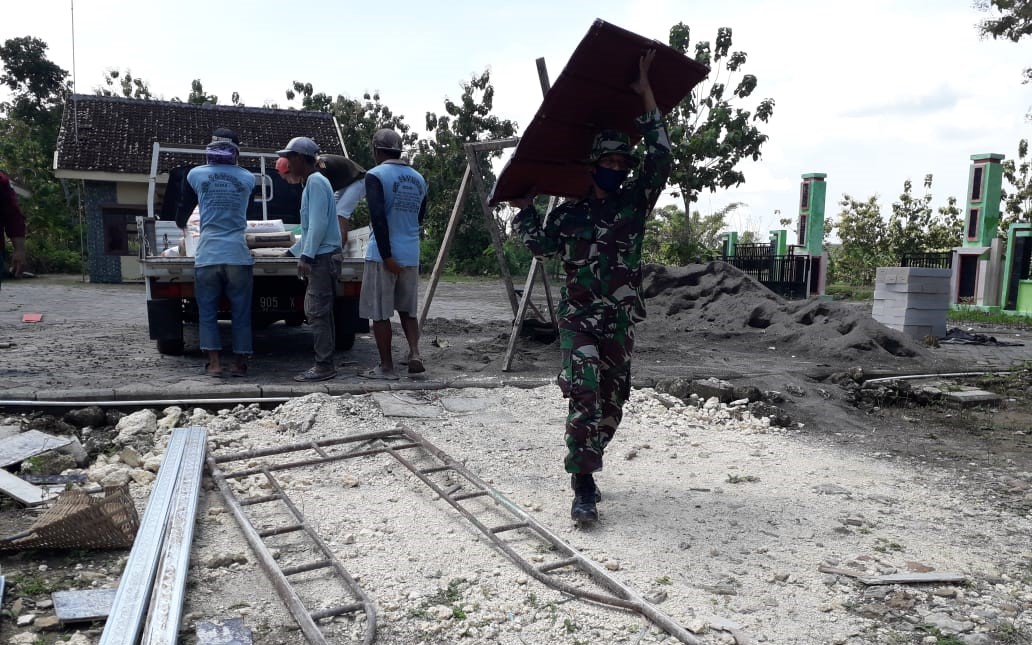 Home KODAM Bangun Gedung SD TMMD Bojonegoro, Satgas Turunkan Genteng Galvalum