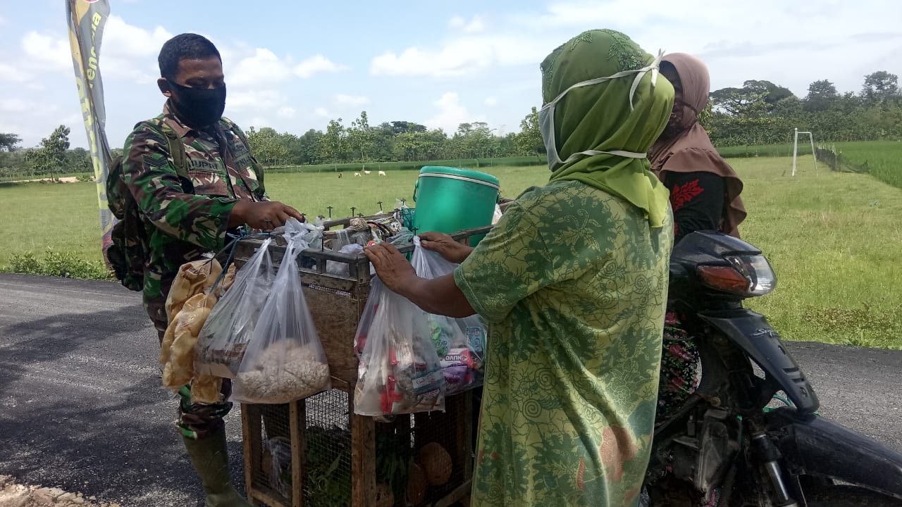 BOJONEGORO,jodanews.com – Untuk menambah pundi-pundi penghasilan keluarga di tengah pandemi Covid-19, beberapa wanita di Desa Jatimulyo tampak berjualan keliling membawa barang dagangan kebutuhan keluarga. Satgas TMMD Kodim Bojonegoro yang berada di lokasi memberikan apresiasi penuh terhadap kegiatan ibu-ibu ini.