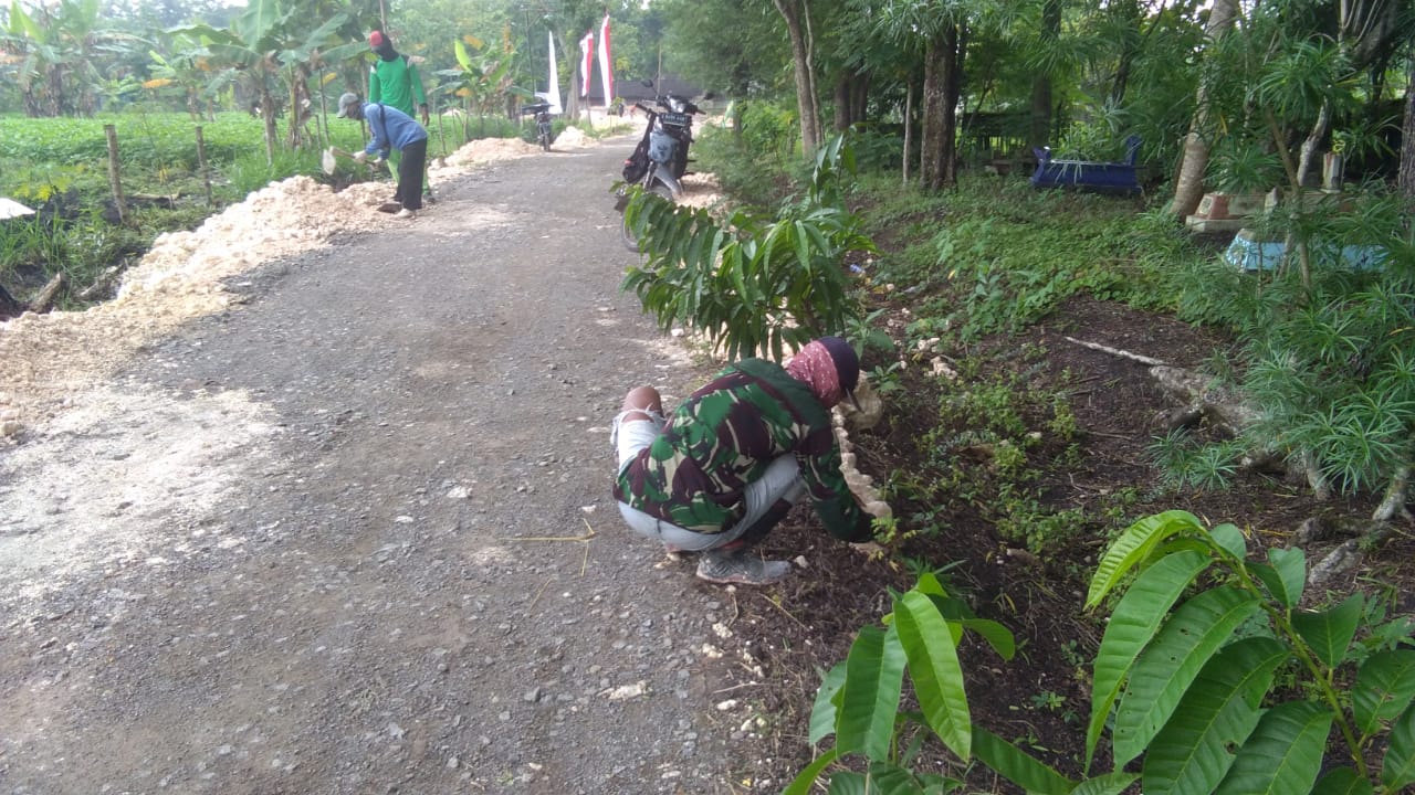 “Untuk mewujudkan lingkungan yang indah, sepanjang jalan di Desa Jatimulyo ditanami pepohonan agar kelihatan rapi dan indah oleh Anggota TMMD dan warga,” ujar Serda Siswanto, Kamis (18/3/2021).