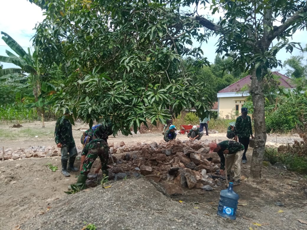 Bojonegoro, jodanews.com-Anggota TMMD ke-110 Kodim 0813/Bojonegoro di Desa Jatimulyo, Kecamatan Tambakrejo bersama-sama membangun jalan.