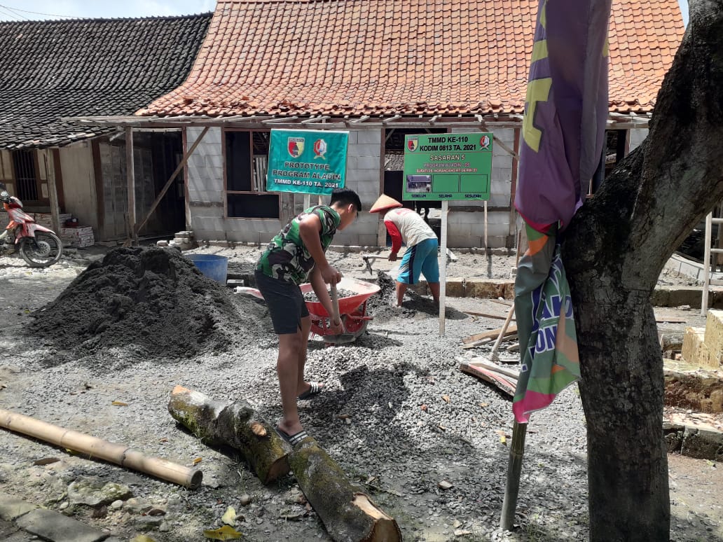 “Saya sedang melakukan pengadukan semen di rumah ibu Sunarti,” kata Serda Samsuri, Jum’at (19/10/2021).
