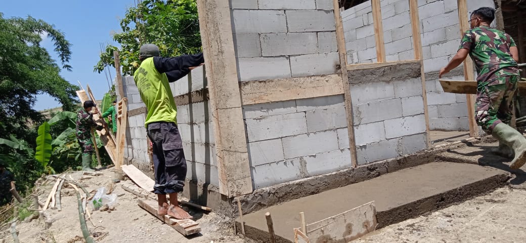 Rumah sasaran fisik yang dikerjakan oleh Anggota Satgas TMMD 110 Kodim 0813/Bojonegoro sudah selesai pengerjaan pengecoran sabuk dinding rumah.