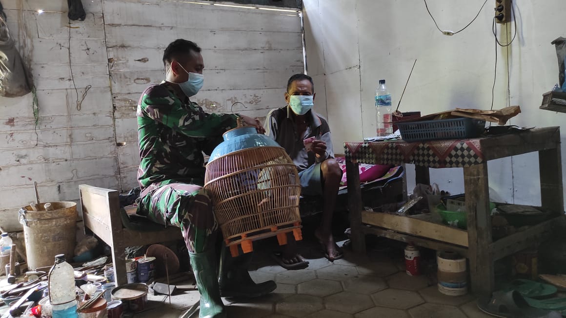 Bojonegoro,jodanews.com – Serda Dwi Purnomo Personil Satgas TMMD Kodim 0813/Bojonegoro Ke- 110 mengunjungi pengrajin sangkar Burung bernama Badri (79) warga Dusun Nglambangan RT. 04/RW. 02 Desa Jatimulyo, Kecamatan Tambakrjo, Bojonegoro.