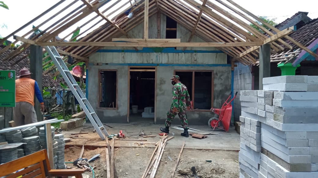 Dirinya mengatakan bawa pekerjaan fisik bangunan RTLH milik Pak Saimin baru sekitar 60%, Serda Samsuri berharap atap segera selesai sehingga pekerjaan tinggal finishing pemasangan keramik lantai.