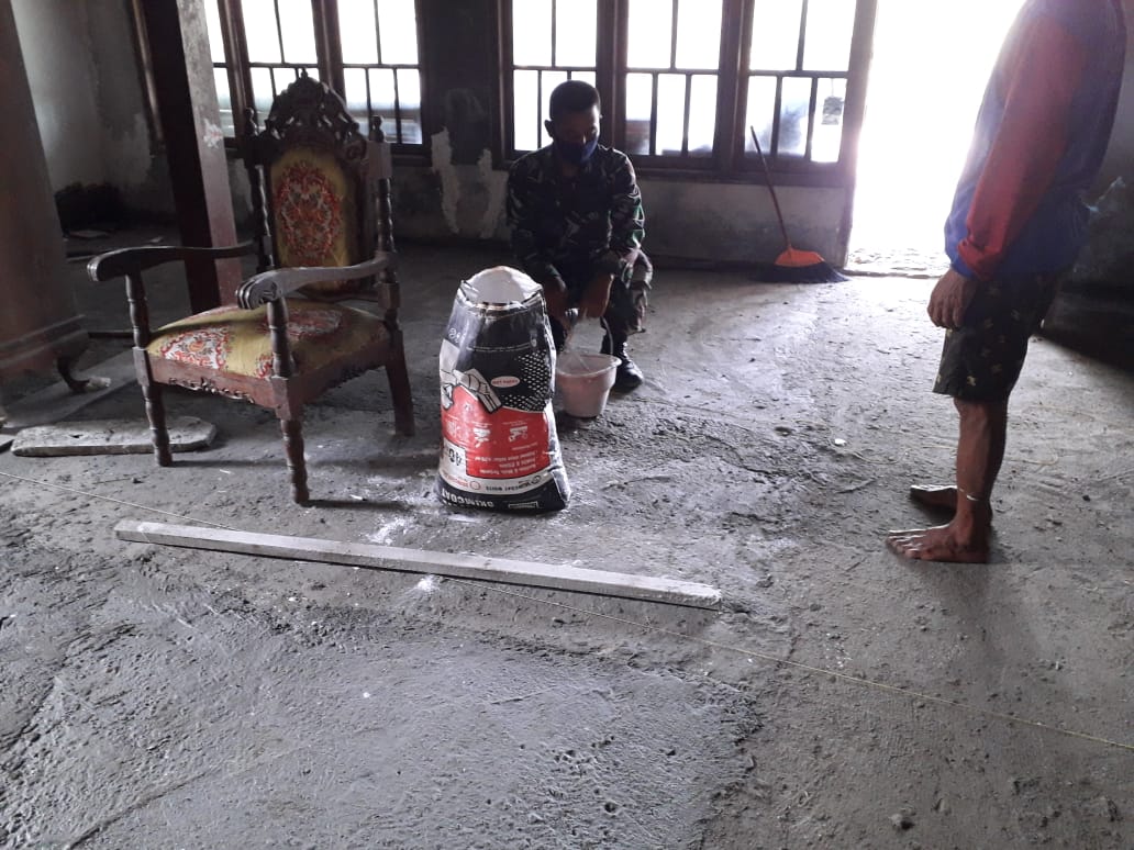 Bojonegoro, jodanews.com – Anggota Satgas TMMD Ke- 110 Kodim 0813/Bojonegoro Serda Samsuri sedang membantu di rumah Bapak Lasmin. Bapak Lasmin ini mendapat program rumah di sasaran TMMD ke-110 Kodim 0813/Bojonegoro.