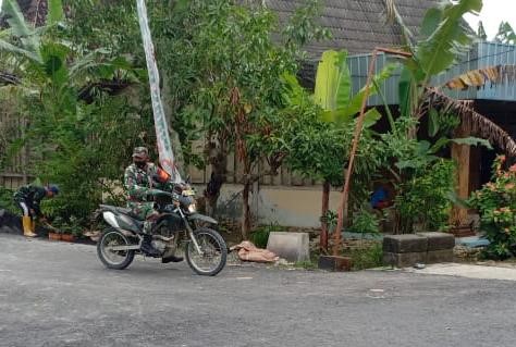 Nampak terlihat Danramil sedang berhenti di pertigaan jalan Desa tersebut untuk melihat pekerjaan yang sudah selesai.