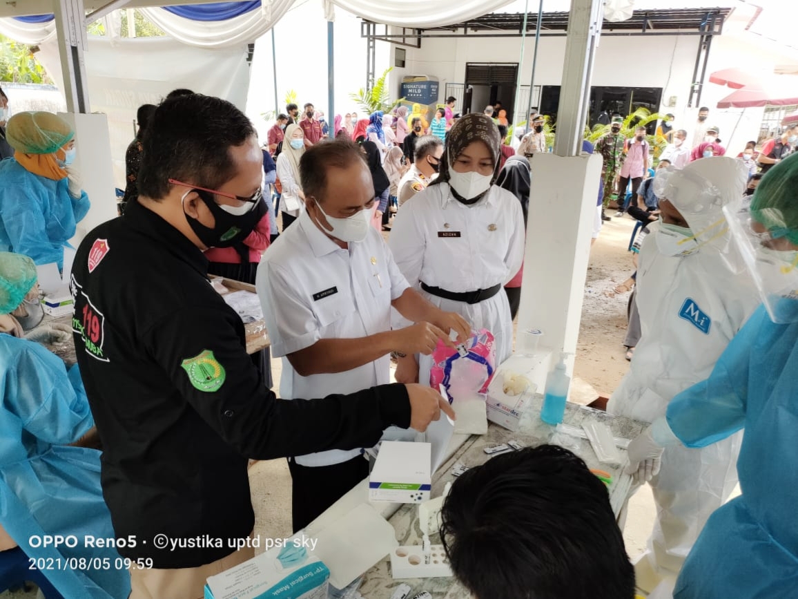 Hadir langsung meninjau kegiatan swab dan vaksinasi Sekretaris Daerah Kab. Muba Drs. H. Apriyadi, M.Si didampingi Kepala Dinas Kesehatan dr. Azmi Dariusmansyah, MARS. Kepala Dinas Perdagangan dan Perindustrian Azizah, S.Sos, MT serta Tim Satgas dari BPBD Muba, Kapolsek Sekayu M. Akib, Koramil Sekayu, Sat Pol PP Muba, Camat Sekayu diwakili Sekcam, Kepala Puskesmas Lumpatan Lismawati dan Kepala UPTD Pasar Yustika.