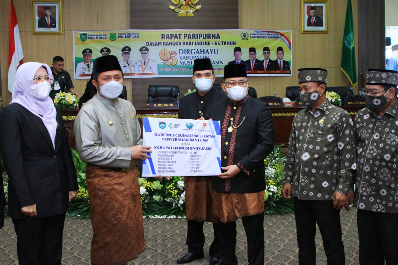 Mengantisipasi Pandemi Covid-19, peringatan hari jadi Kabupaten Muba yang Ke-65 ini dilaksanakan secara sederhana dan tetap menerapkan Protokol Kesehatan secara ketat.