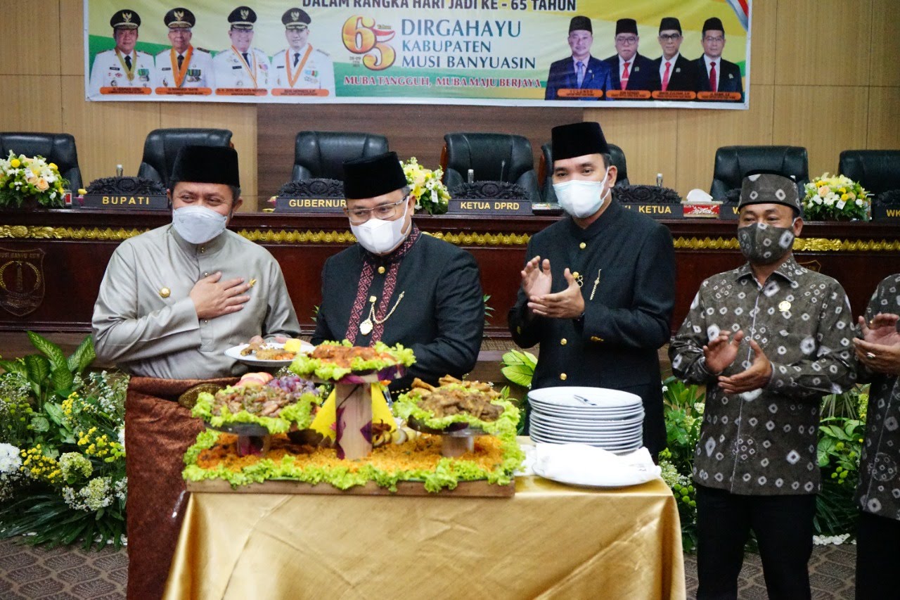 Bupati Muba Dr H Dodi Reza Alex Noerdin Lic Econ MBA mengatakan, HUT Kabupaten Muba ke-65 tahun Ini akan menjadi momen untuk melanjutkan pemerataan pembangunan di Kabupaten Muba dan sebagai Evaluasi semua pihak. Adanya Pandemi Covid-19 tidak mengurangi semangat dan makna hari jadi Kabupaten Muba dengan mengusung Tema ”Muba Tangguh, Muba Maju Berjaya”. (Editor Jonheri)