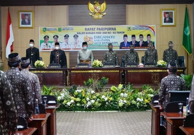 MUBA, jodanews.com – Dalam rangka memperingati Hari Ulang Tahun Kabupaten Musi Banyuasin (Muba) Ke-65 tahun 2021, Dewan Perwakilan Rakyat Daerah (DPRD) Muba melaksanakan Sidang Paripurna Istimewah di ruang Rapat Paripurna DPRD Muba, (28/9/2021).