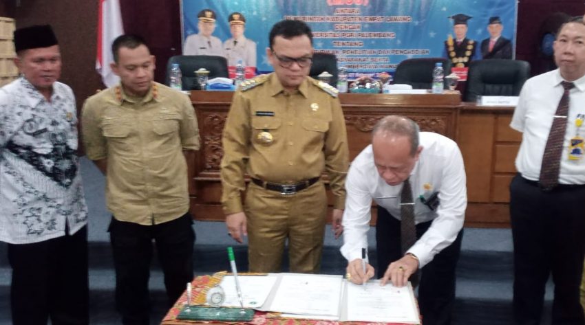 EMPAT LAWANG, jodanews.com – Bupati Empat Lawang Joncik Muhammad menandatangani nota kesepakatan (Mou) dengan Universitas PGRI Palembang, selasa (07/02/2023).