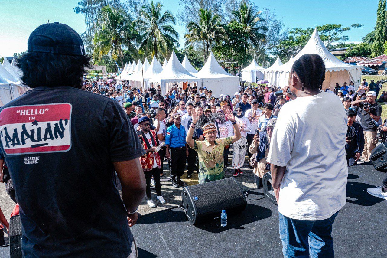 JAYAPURA, jodanews.com- Menteri Pariwisata dan Ekonomi Kreatif (Menparekraf) Sandiaga Salahuddin Uno mengapresiasi kesuksesan penyelenggaraan Festival Crossborder Skouw 2023 yang berlangsung pada 6 Juli 2023. Tercatat sebanyak 1000-1500 baik dari Papua maupun Papua Nugini hadir pada rangkaian acara yang berpusat di  Pos Lintas Batas Negara (PLBN) RI-PNG di Skouw, Distrik Muara Tami, Kota Jayapura, Papua.  “Saya berterima kasih kepada semua pihak yang terlibat. Ini adalah gelaran ketiga Festival Crossborder Skouw dan ini adalah bagian dari kita mempererat persaudaraan, menggerakkan ekonomi, dan mencapai cita cita bersama untuk bangkit dari pandemi,” ujar Menparekraf Sandiaga. Acara ini dikatakan Menparekraf Sandiaga merupakan implementasi dari arahan Presiden Joko Widodo yang meminta untuk menghadirkan berbagai event di seluruh wilayah di Indonesia guna pemerataan ekonomi masyarakat.