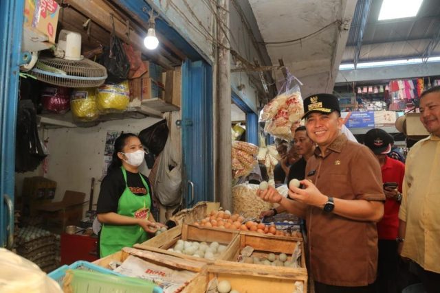 Pj Gubernur  Agus Fatoni  Cek ke Pasar,  Harga Daging Turun-Telur Stabil