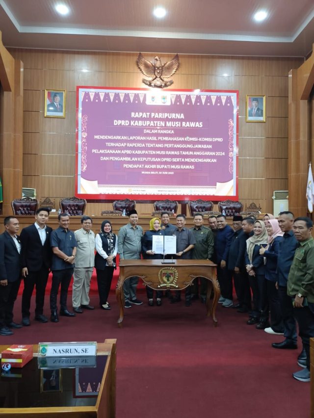 Persetujuan itu disampaikan anggota DPRD Musi Rawas melalui juru bicara masing-masing komisi dalam rapat paripurna DPRD Kabupaten Musi Rawas dengan agenda Mendengarkan Laporan Hasil Pembahasan Komisi-Komisi DPRD Terhadap Raperda tentang Pertanggungjawaban Pelaksanaan APBD Kabupaten Musi Rawas Tahun Anggaran 2024 dan Pengambilan Keputusan DPRD serta Mendengarkan Pendapat Akhir Bupati Musi Rawas, Senin (30/6/2025).