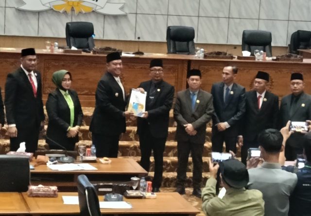 Penyerahan nota keuangan Raperda APBD tahun anggaran 2026 yang disampaikan Wabup Iwan Tuaji.